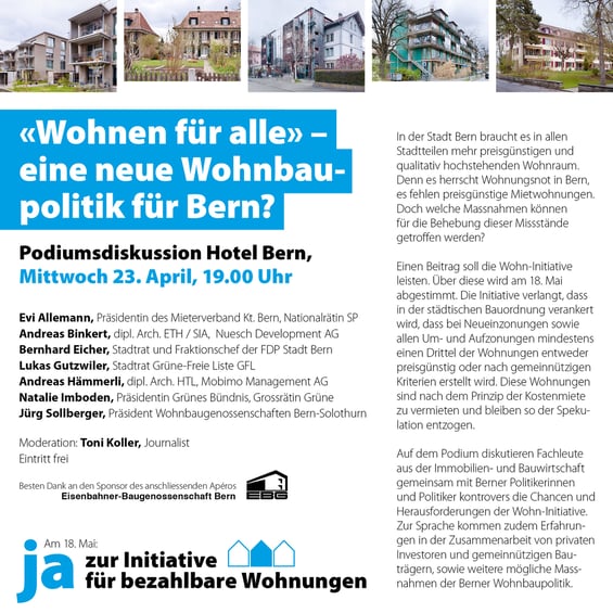 Wohnpolitische Weichenstellung am 18. Mai in Bern in Aussicht
